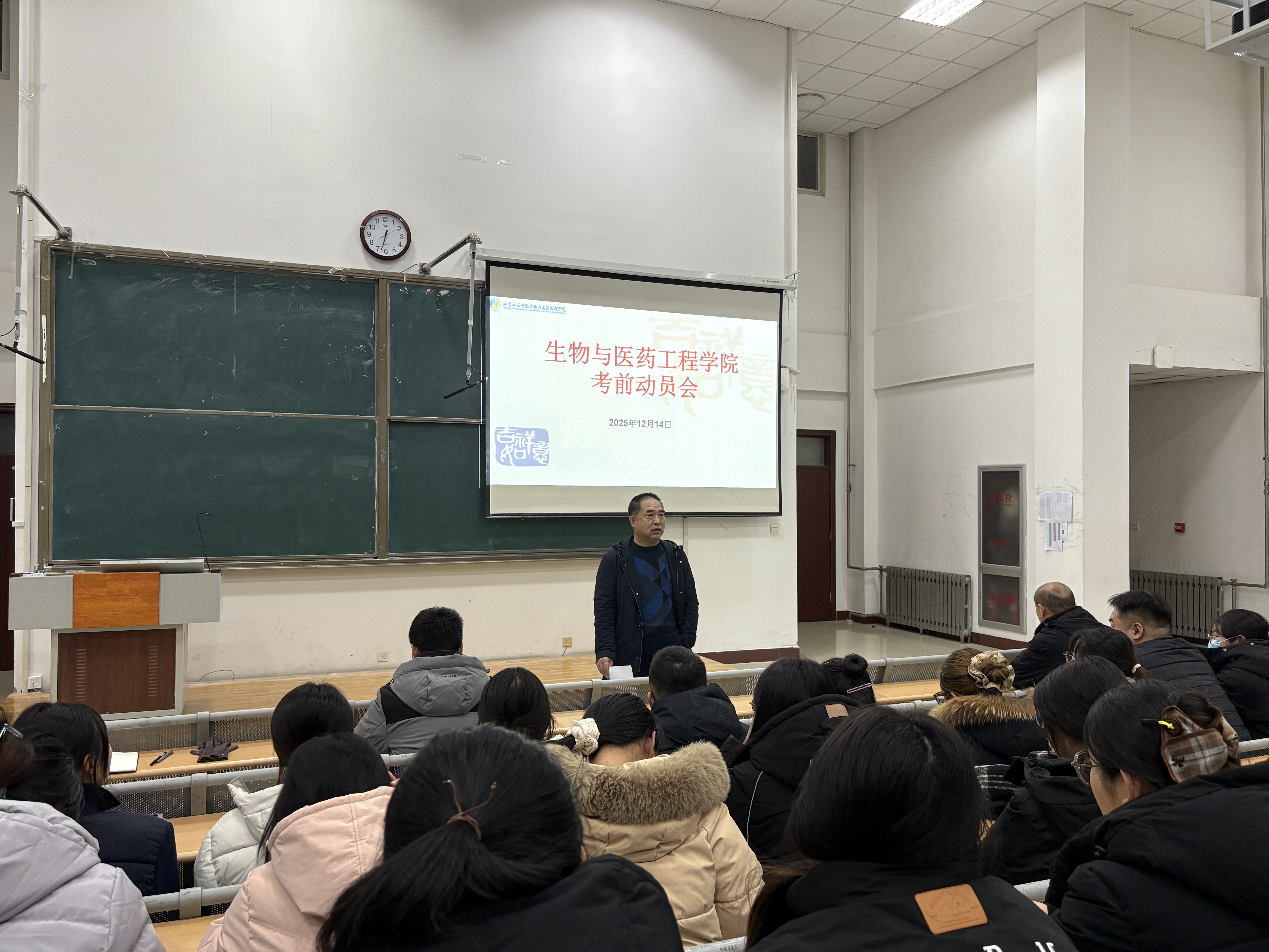 考前动员阶段,22级班主任代表王琦老师立足工作实际,围绕“考前准备、考中应对、考后总结”三个关键环节,系统梳理应考要点及注意事项,形成具有可操作性的指导方案。赵丽萍老师围绕“考研后勤保障”主题,全面通报考试期间校园生活保障措施,重点就考生交通往返及财物保管等事项作出具体安排,缓解考生应考心理压力。李炳斋书记紧扣考试体系核心要义,就考试流程与时间节点作重点部署,指导毕业生合理规划备考进度,强化纪律意识,端正应考态度。满强老师作总结讲话,他对全体考生一年来的努力予以充分肯定,以“奋发图强,实现梦想”的激励性语言提振学生自信,指出应保持平和心态、强化备考实效、确保应试发挥效果。会上同步发放了考研暖心文具,助力每位生工学子圆梦未来。